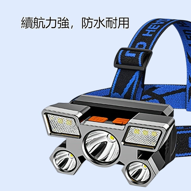LED五核頭燈可充電強光頭戴式照明燈遠射戶外釣魚燈礦燈
